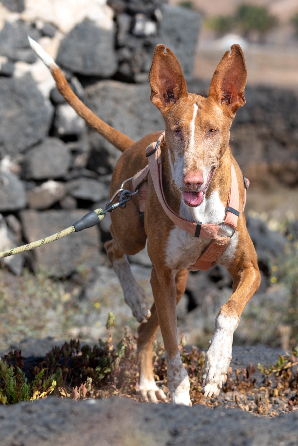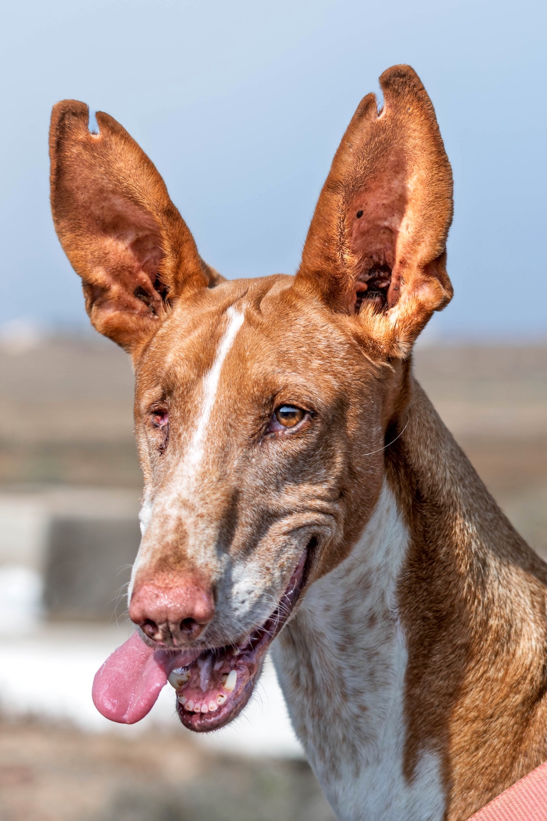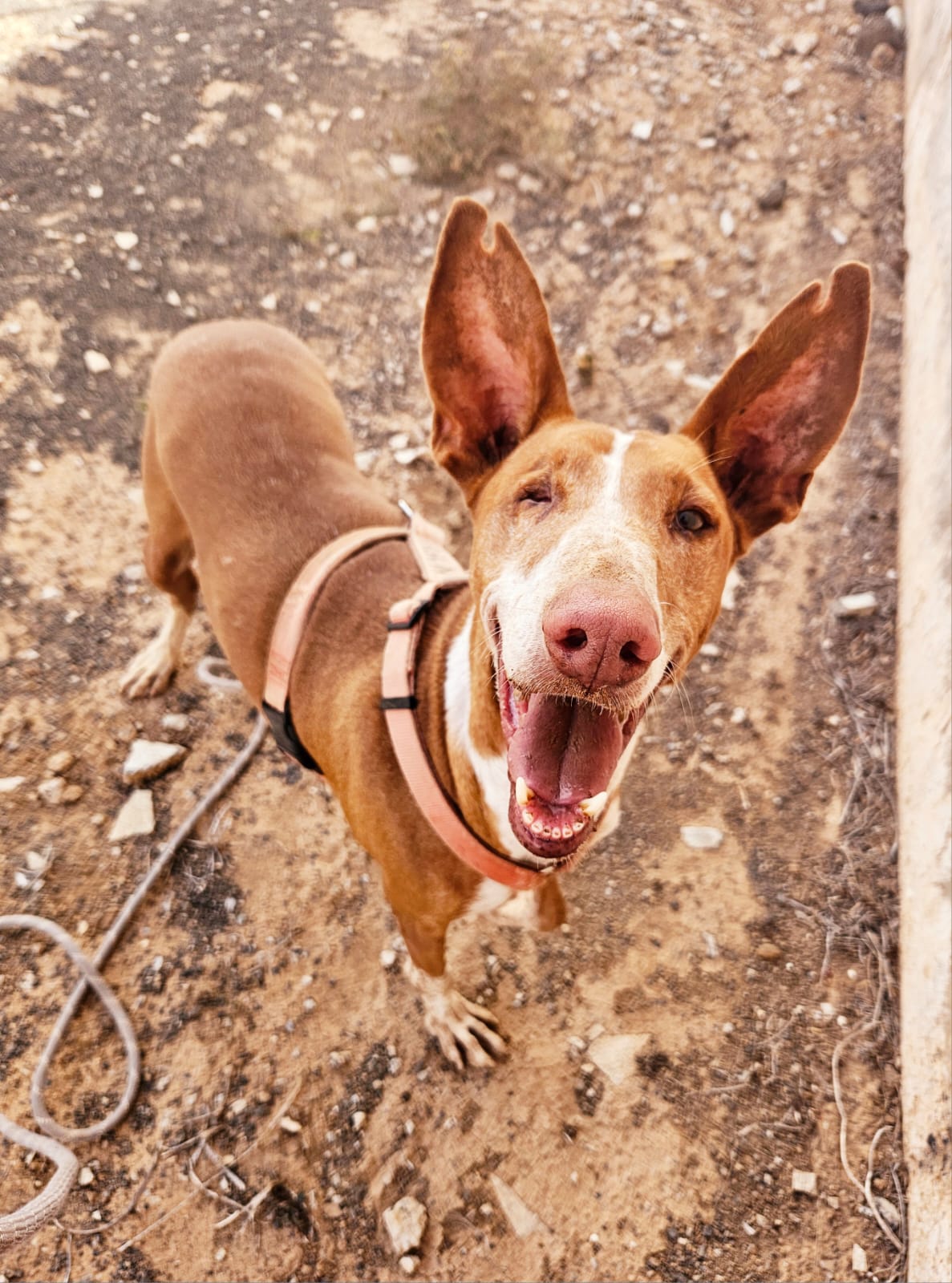 Argun è un podenco bello, allegro, buono e tremendamente affettuoso, purtroppo ha perso un occhietto.