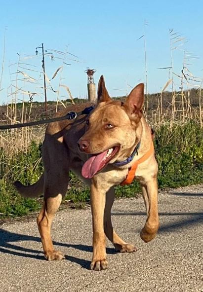 Il solito cane di proprietà, preso da cucciolo cresciuto in casa forse per divertire i figli e poi buttato in campagna perché ad 10 mesi forse, troppo impegnativo!!